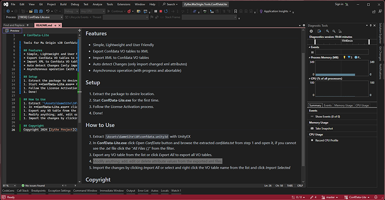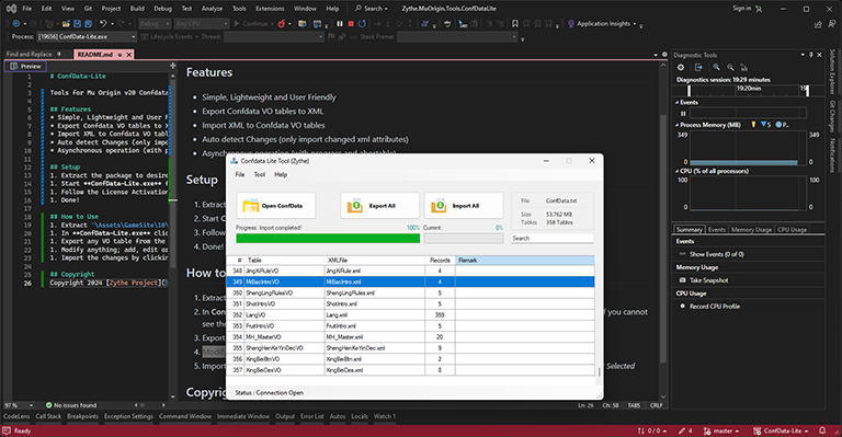 Tools for Mu Origin v20 Confdata.unity3d to export and import changes